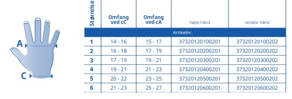 Handsken fås i forskellige størrelser og til både højre og venstre hånd, hvilket sikrer en behagelig pasform til forskellige håndleds- og håndomkredse.